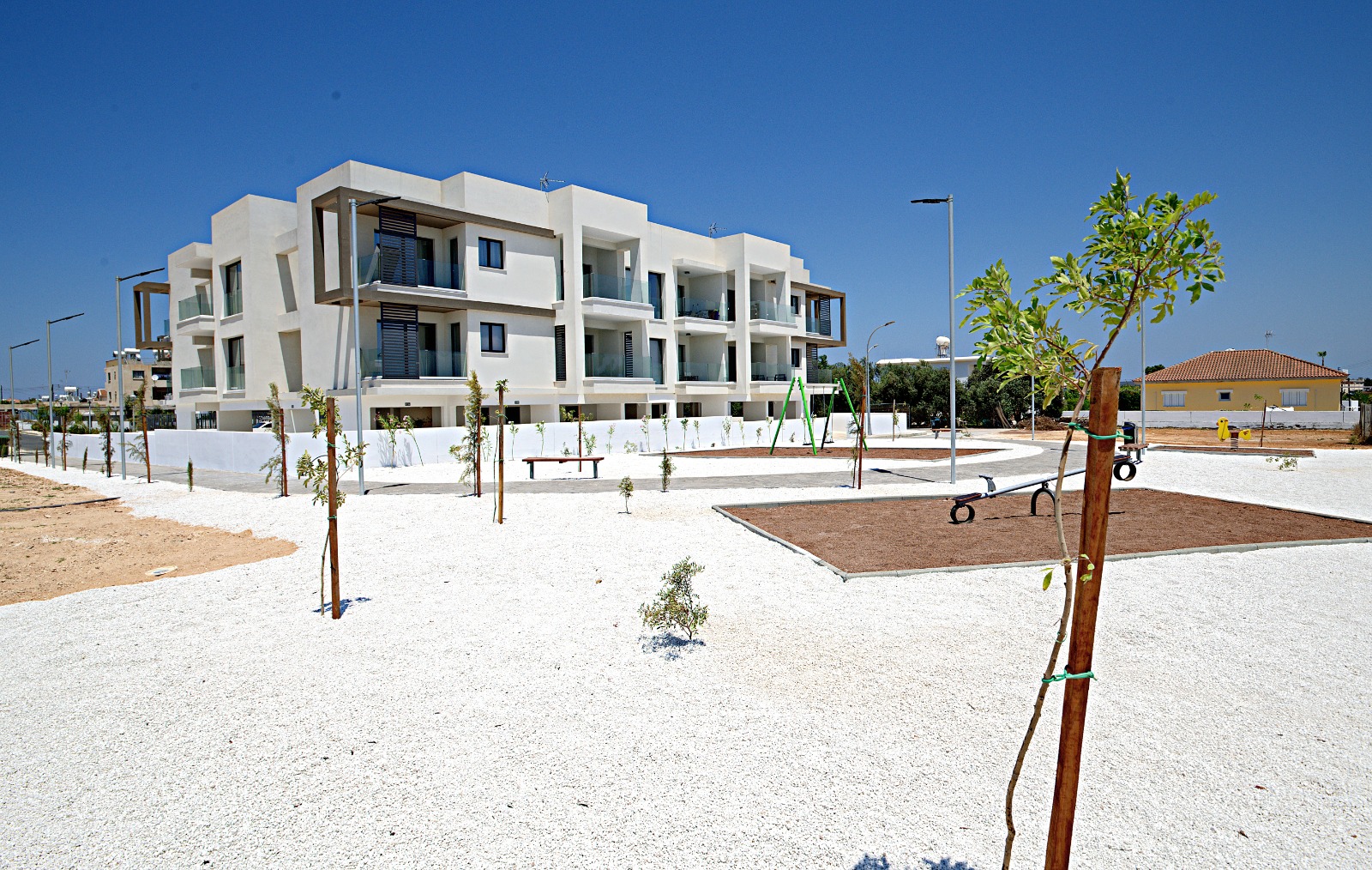 Golden Tree Apartment in Paralimni offers a spacious layout with two bedrooms and a living room. The apartment includes a terrace, balcony, and garden views.